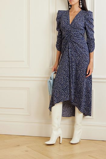 Ginkinali pleated floral-print silk crepe de chine midi skirt