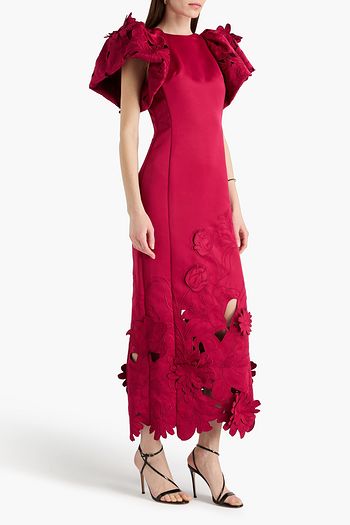 Floral-appliquéd organza maxi dress