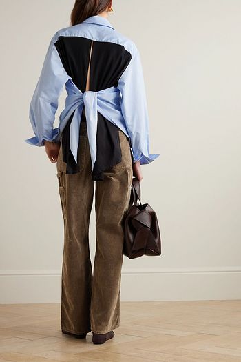 Apron striped voile-paneled cotton-poplin shirt