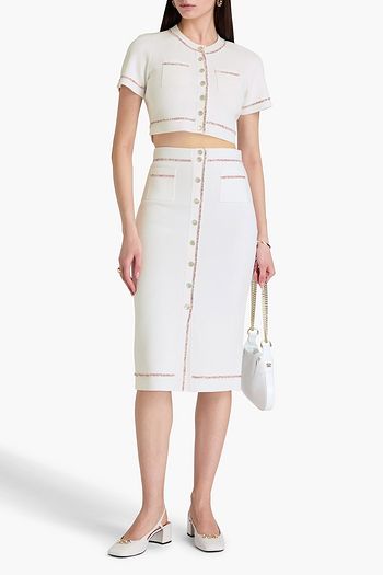 Crystal-embellished stretch-knit midi pencil skirt