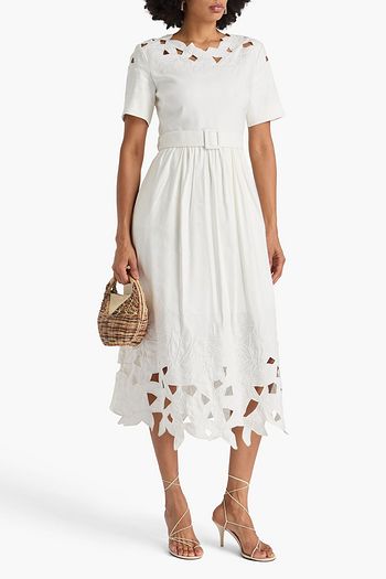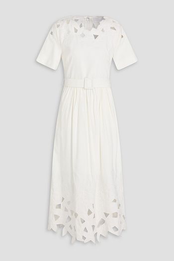 Rhoda crochet-trimmed satin-crepe midi shirt dress