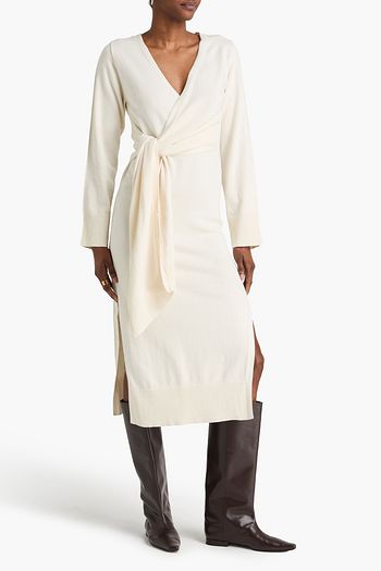 Samba wrap-effect draped crepe-satin midi shirt dress