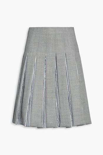 Pleated pinstriped wool and cotton mini skirt