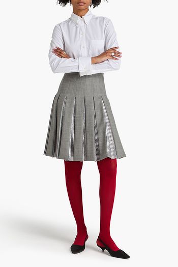 Poplin-paneled pleated Prince of Wales checked wool mini skirt