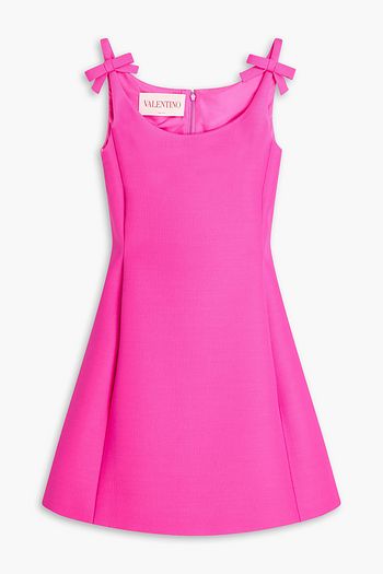 Bow-detailed wool and silk-blend crepe mini dress