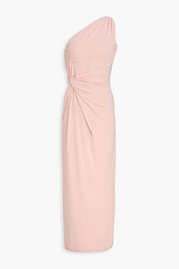 One-shoulder draped stretch-crepe dress