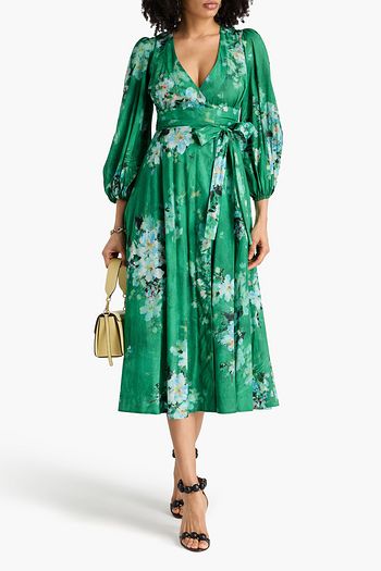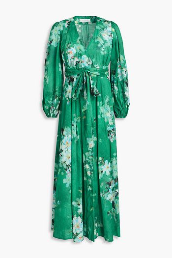 Floral-print linen midi wrap dress