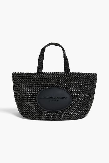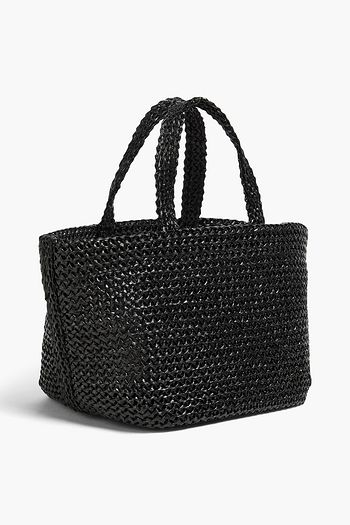 Croc-effect leather-trimmed raffia tote