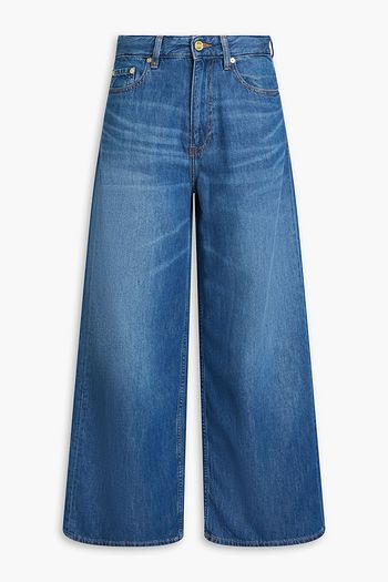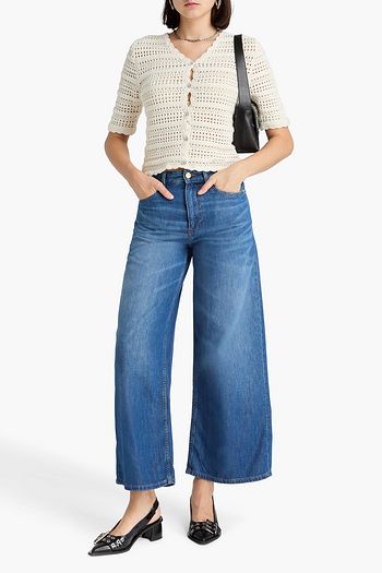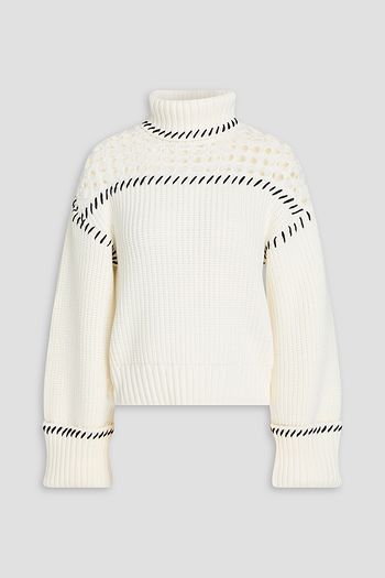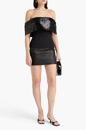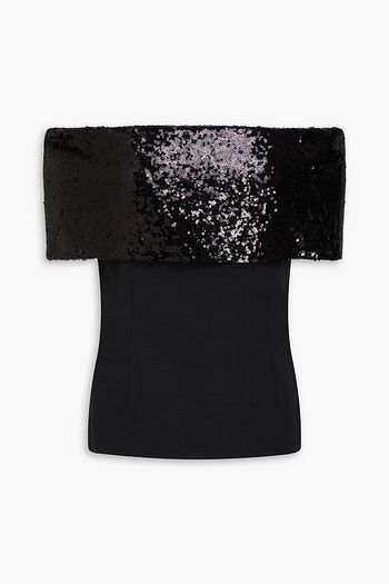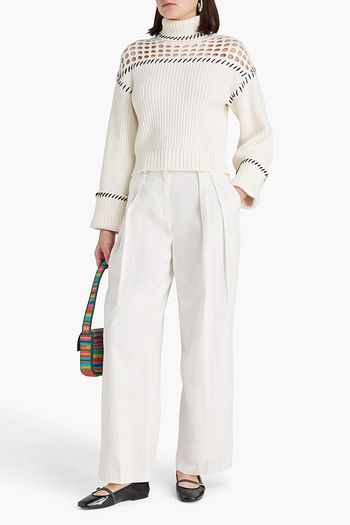 Off-the-shoulder draped two-tone cotton-blend poplin midi dress