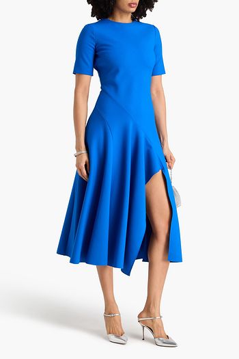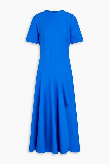 Asymmetric striped poplin-paneled wool midi shirt dress