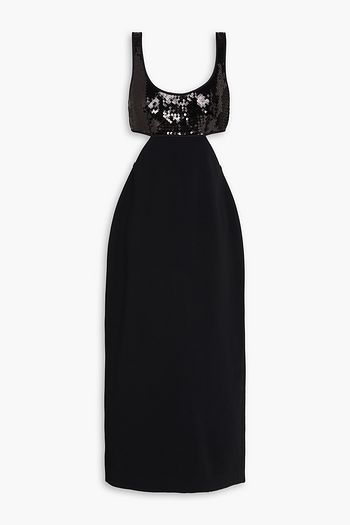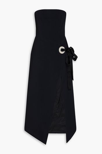 Floral-appliquéd Prince of Wales checked wool-tweed midi dress