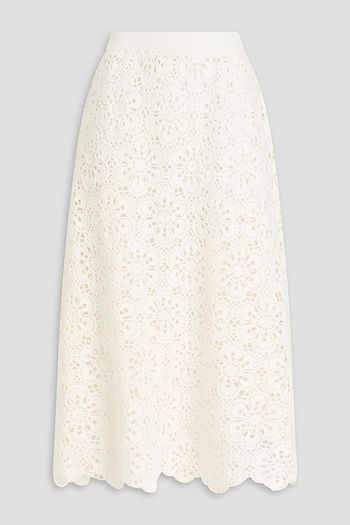 Embellished ribbed and pointelle-knit midi pencil skirt