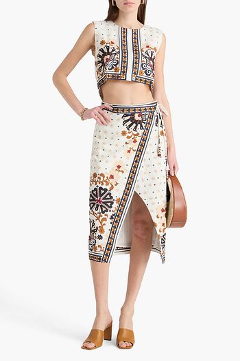 Pleated printed lyocell and cotton-blend poplin midi skirt