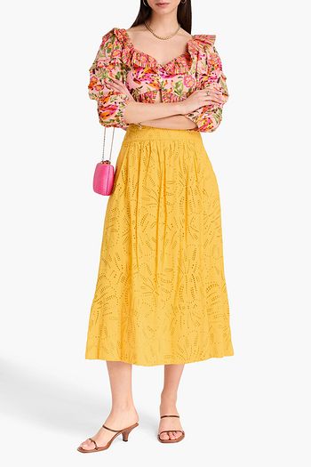 Monstera broderie anglaise cotton midi skirt