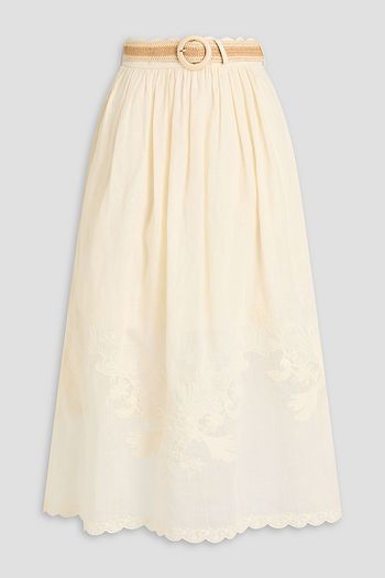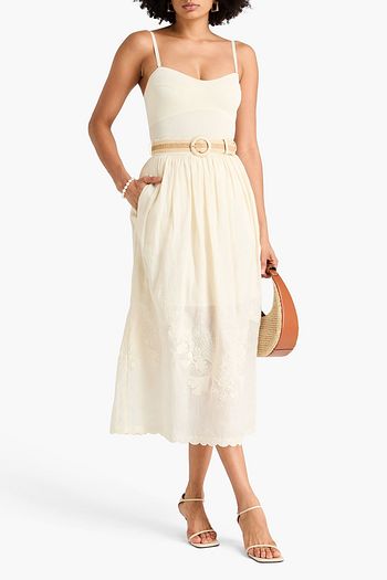 Gathered broderie anglaise cotton-blend midi skirt