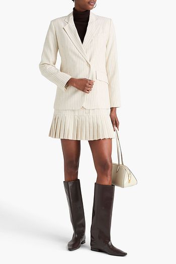 Embellished cotton-blend bouclé-tweed wide-leg pants