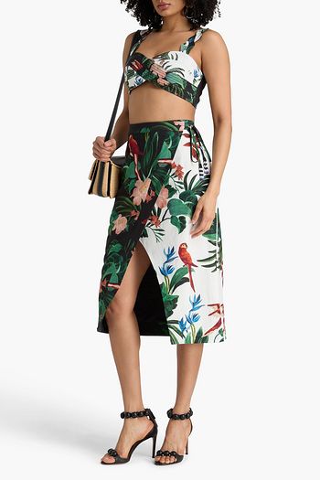 Cropped appliquéd ribbed cotton and merino wool-blend tank