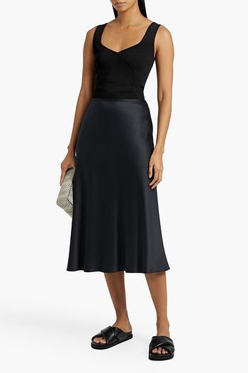 Silk satin-trimmed ribbed stretch-modal jersey tank