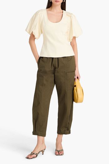 Staya pleated paneled hemp-blend cady wide-leg pants