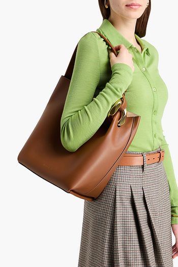 Leather-trimmed cotton-twill tote