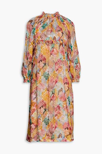 Off-the-shoulder ruffled printed fil coupé jacquard midi dress