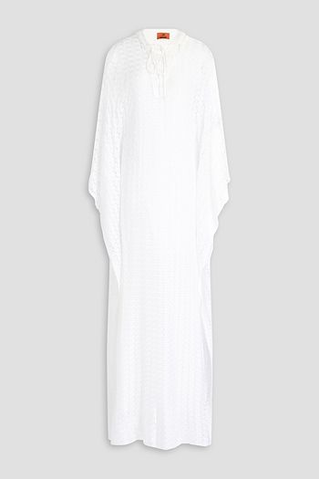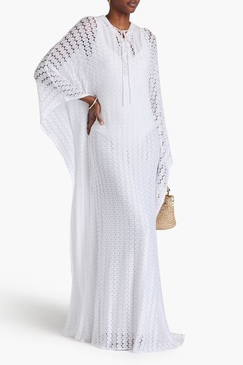 One-shoulder bead-embellished printed cotton-voile midi dress
