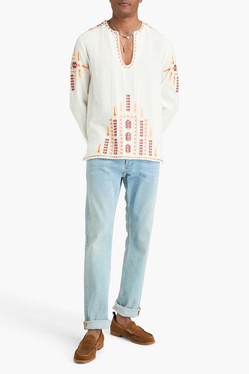 Crochet-trimmed cotton-piqué shirt