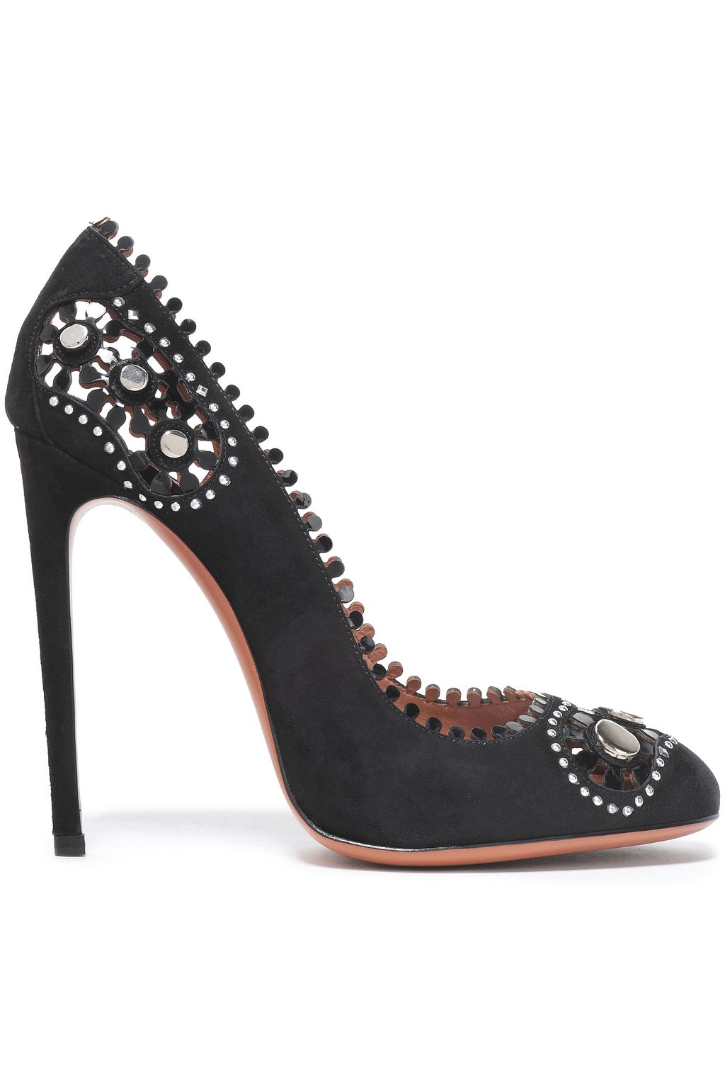 ALAÏA Studded laser-cut suede pumps