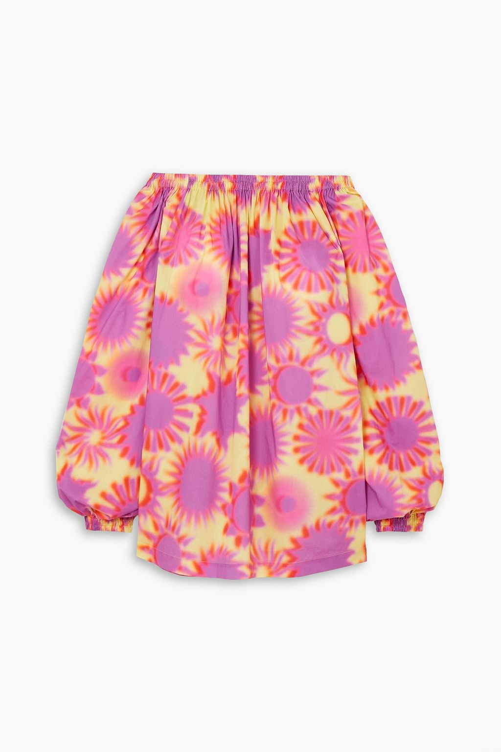 DRIES VAN NOTEN Off-the-shoulder printed cotton-poplin blouse