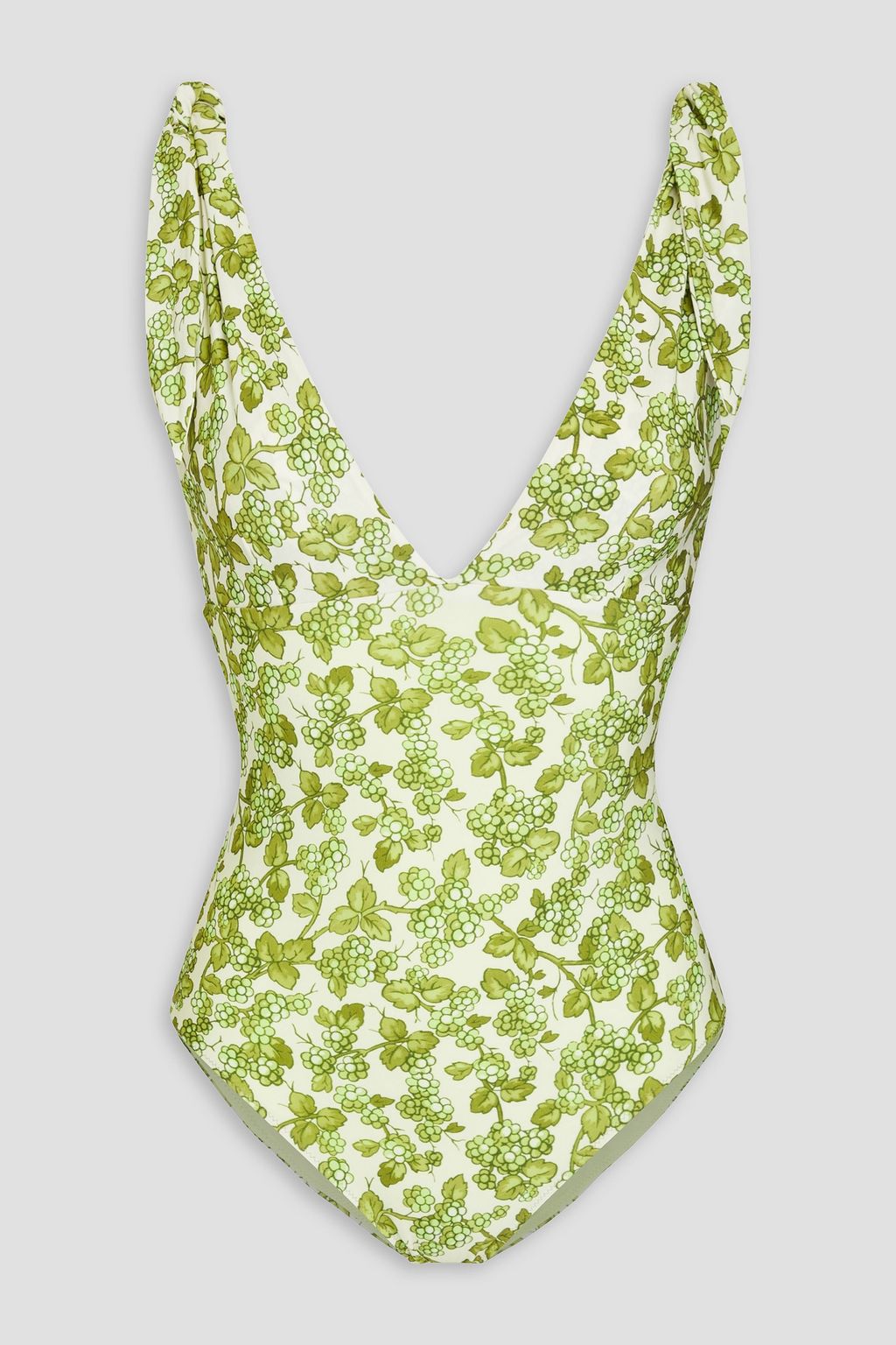 Etro's swimsuit is intricately printed with grape vines. It's been made in Italy from sculpting stretch fabric and has a deep V-neckline and ties at the shoulders. Wear it as a bodysuit when sightseeing on vacation.