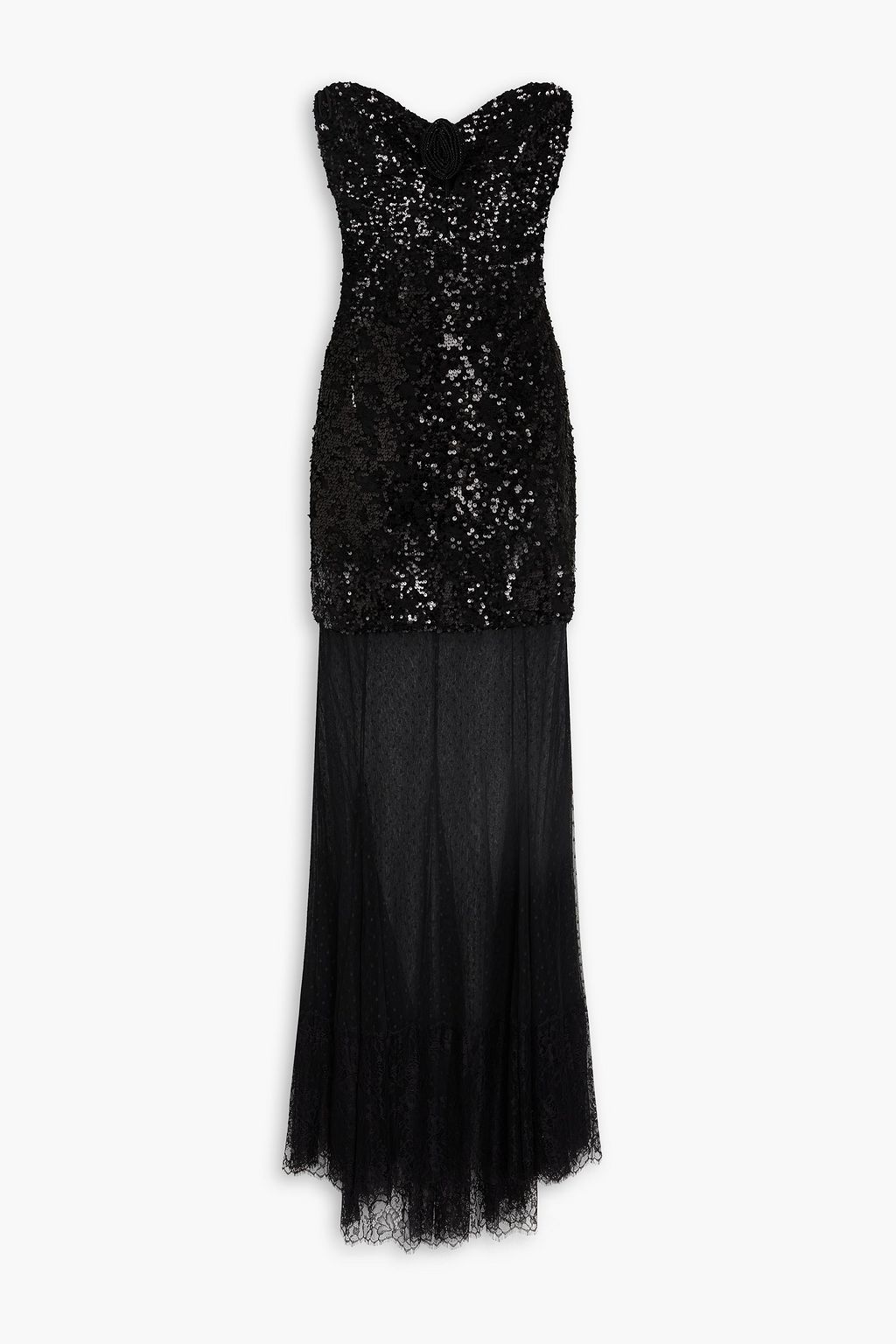 Perfect black tie dressing wearing this floor-length design with sparkling jewelry