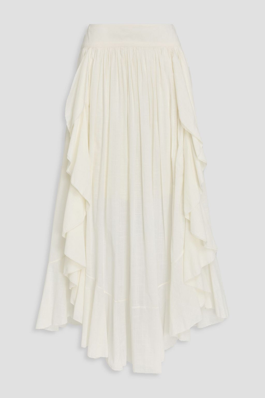 Expect all eyes on you in Zimmermann's ethereal maxi skirt. It's cut from ecru cotton with gorgeous ruffles and partial lining for coverage. It's so easy to dress up or down - either way, it always feels effortlessly glamorous.