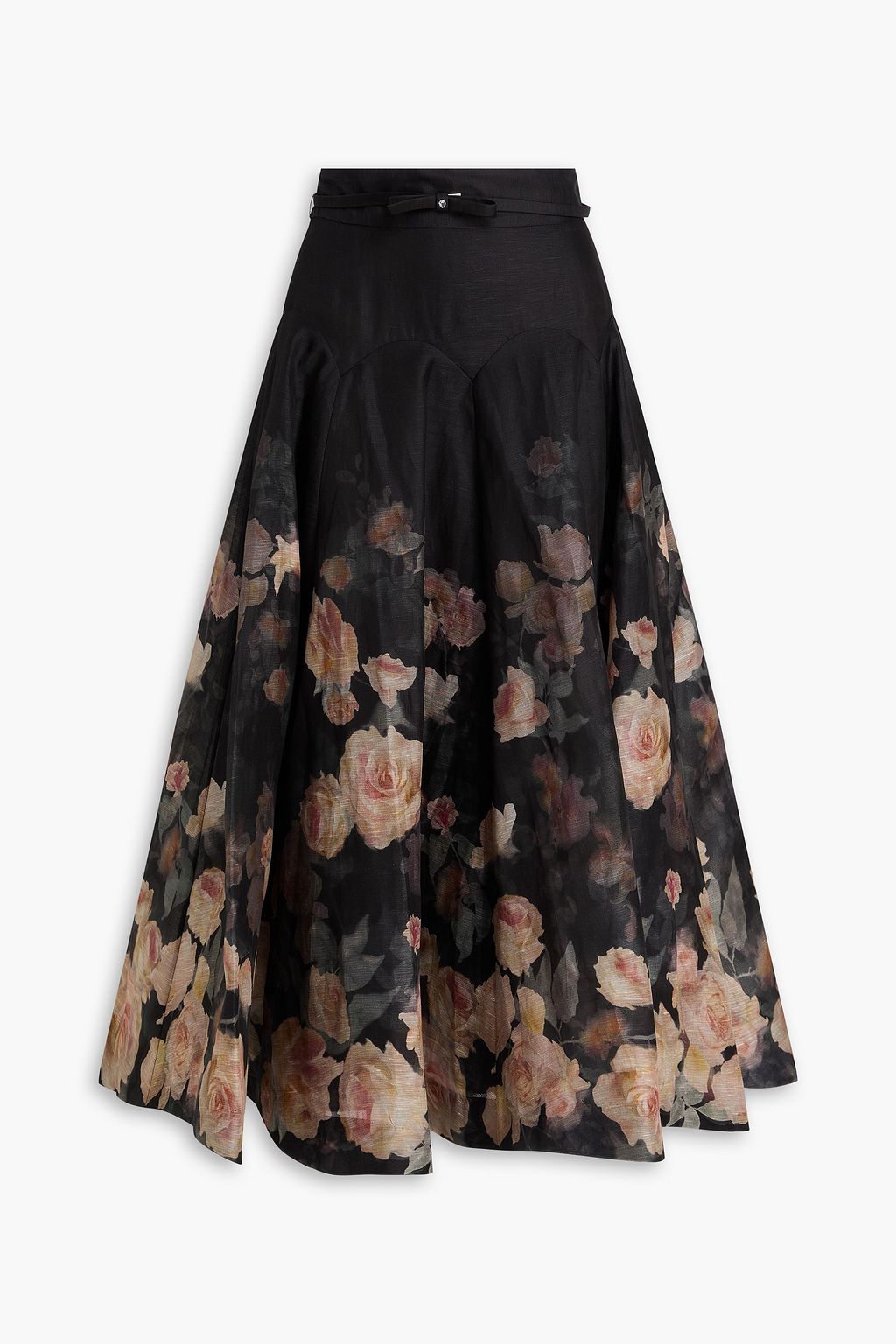 ZIMMERMANN Floral-print linen and silk-blend midi skirt