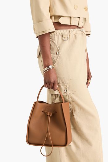 Striped poplin and cotton-blend canvas midi wrap skirt