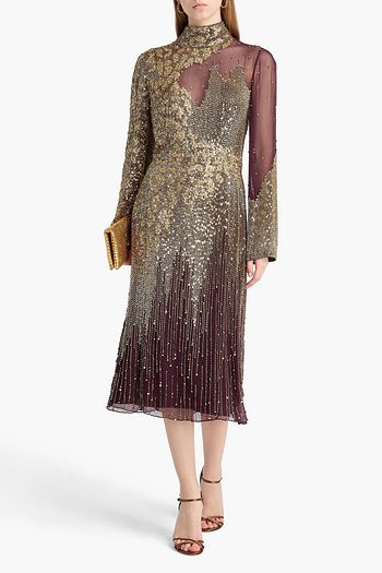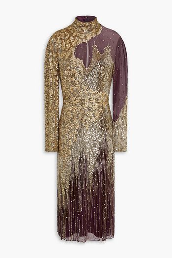Ballroom Blitz off-the-shoulder crystal-embellished sequined satin midi dress