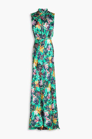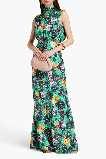 Fleur gathered printed silk gown