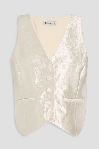 Baylin denim-paneled bouclé-knit cotton-blend jacket