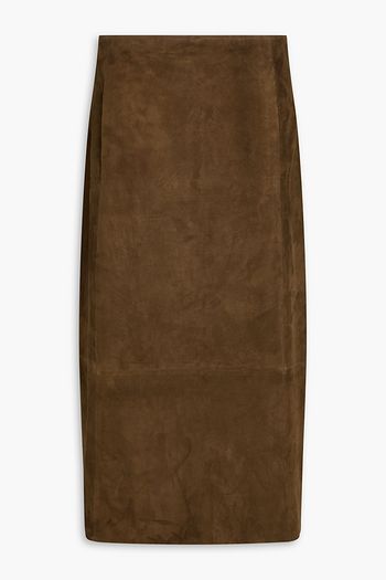 Wrap-effect satin-crepe midi skirt