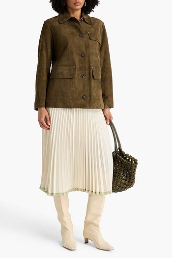 Zip-detailed satin-crepe midi skirt