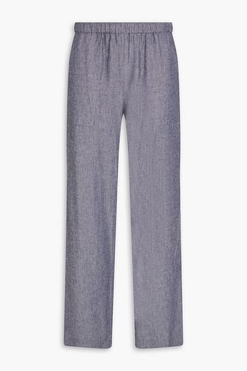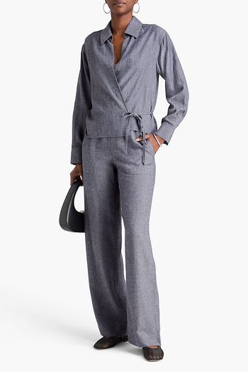 Herringbone wool-blend flannel wide-leg pants