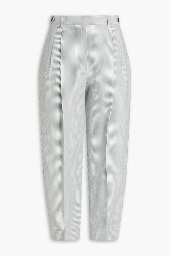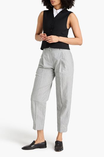 Striped cotton and linen-blend tapered pants