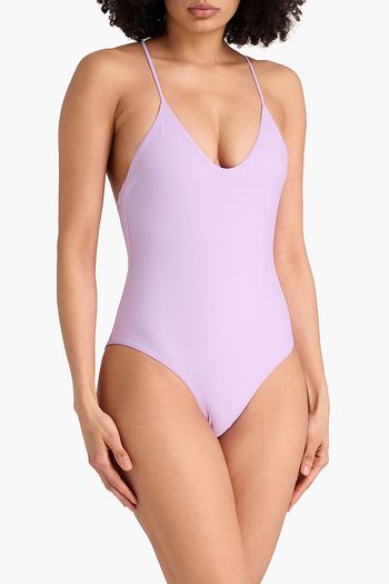Paula off-the-shoulder cutout piqué swimsuit