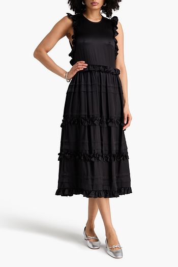 Aileen ruffled silk-satin midi dress