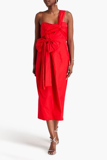 Valentina bow-detailed draped cotton-poplin midi dress