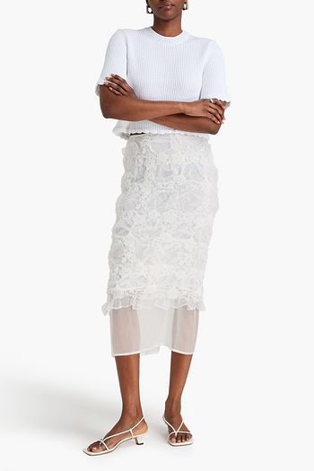 Ocean ruffled silk-organza midi skirt