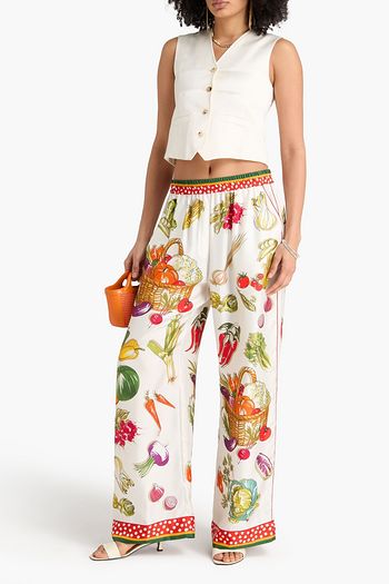 Gathered printed silk-voile maxi skirt