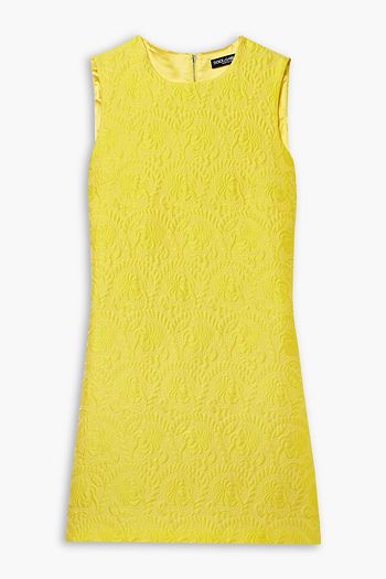 Lace-trimmed floral-print cotton-blend velvet mini dress