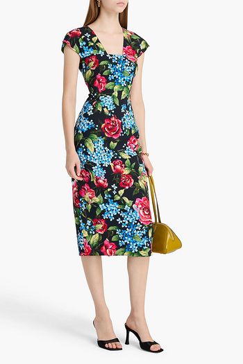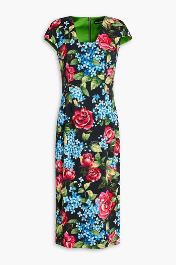 Crochet-trimmed floral-print cotton-blend poplin dress