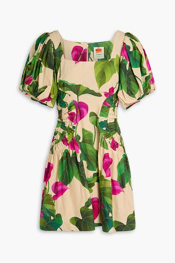 Ruffled floral-print cotton-poplin mini dress