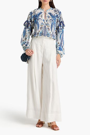 Honeycomb ruffled guipure lace and cotton-jacquard blouse